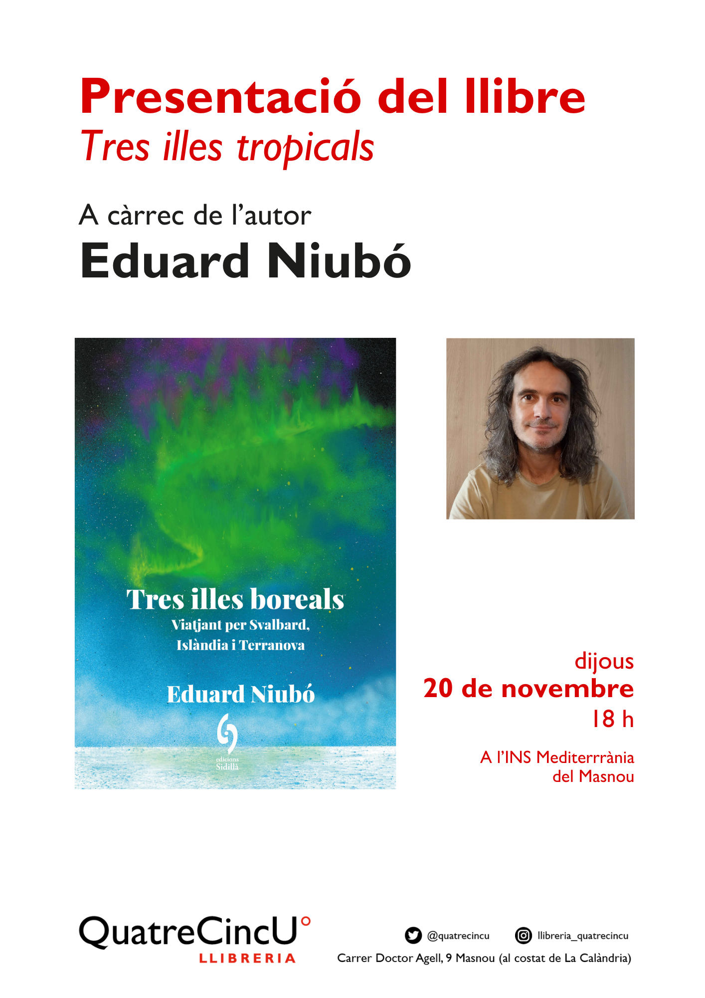 Dijous 20, a les 18h Tres illes boreals d'Eduard Niubó, a l'INS Mediterrània del Masnou