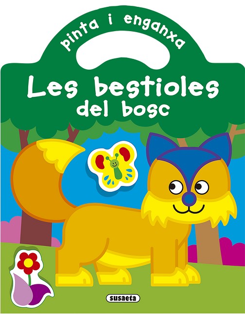 Pinta els dibuixos de les bestioles del bosc amb els colors que més tagradin, i enganxa-hi els bonics adhesius per a completar les il·lustracions.