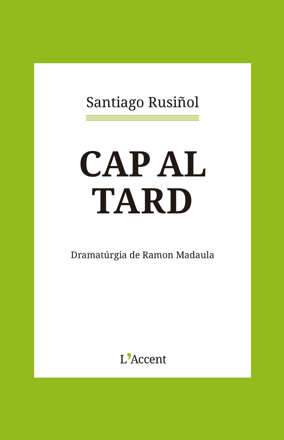 Malgrat l'extensió de la seva obra, tant pictòrica com literària, el que ha transcendit més de Rusiñol és el personatge que ell mateix es va crear i que li va donar una popularitat que encara perdura. Un personatge, però, que sovint amaga el veritable Rusiñol. Llegint les seves proses, hi trobem fragments on ens confessa les seves inquietuds, els seus anhels, les seves pors, les seves il·lusions, el seu concepte de l'art, la seva filosofia, i també les seves addiccions; i tot seguit s'hi entreveu un altre Rusiñol, un Rusiñol tocat per una malenconia vital, perseguint l'ideal, ferit per les drogues i l'alcohol, sovint més solitari del que la gent creu, perdut en el seu propi personatge, incomprès pels contemporanis. Un Rusiñol, al capdavall, més interessant i complex que el dels “duros a quatre pessetes”. "Cap al tard" és un recull d'aquestes proses, les més íntimes i definidores de Rusiñol, triades per l'actor Ramon Madaula per fer-ne un muntatge teatral que es va estrenar l'any 2007, amb la direcció de Sílvia Munt.
