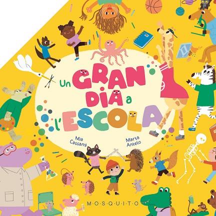 Per fi anem a l02019;escola! És tan divertit, aprendre molt i no parar de jugar! Aquesta, però, és una escola especial, perquè les nenes i els nens juguen amb els seus animalons inseparables. A l02019;hora del pati la girafa juga a bàsquet i el camaleó es disfressa de pilota. Al menjador, l02019;elefant beu aigua i els eriçons ballen damunt la taula. Al taller d02019;art el pop fa servir molts pinzells per pintar i al laboratori fan experiments amb els colors. Obre aquest llibre i veuràs com una gran il·lustració es desplega davant teu!