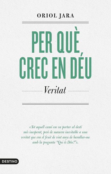 Una obra valenta, íntima i radical.En un món on tot sembla líquid, incert i fals, aquest llibre és un cop de puny a la indiferència. Oriol Jara, conegut guionista i comunicador, trenca amb els tòpics i s’obre en canal per compartir la seva conversió personal en un viatge que comença entre dubtes, llibres i preguntes i culmina amb una trobada transformadora amb Jesús de Natzaret. Amb una escriptura directa i punyent, Jara no ofereix doctrines buides ni discursos imposats, sinó una vivència real i alliberadora. La Veritat, diu, no és una opinió, és una Persona. Aquest llibre és per a qui busca, per a qui dubta, per a qui ha perdut el sentit de la vida o per a qui, amb coratge, s’atreveix a preguntar-se: Què és la veritat? Joan 18,38.