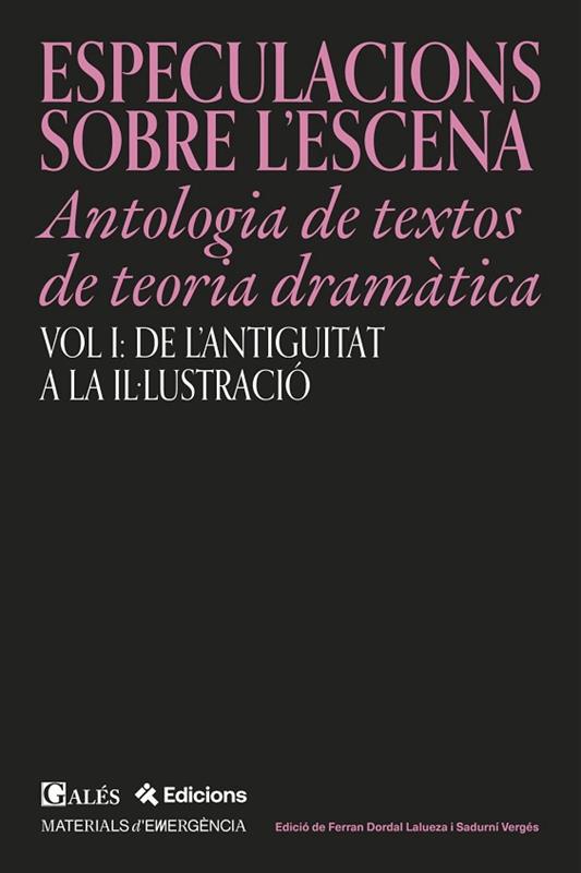 Aquesta antologia, de la qual teniu el primer volum entre les mans, vol esdevenir una guia útil de consulta que reculli de manera clara i endreçada textos imprescindibles de la història de la teoria dramàtica i permeti elaborar un plànol mental de l’evolució del pensament dins d’aquest àmbit. En aquest primer volum, que abasta de l’antiguitat fins a la Il·lustració, trobareu condensats més de dos mil anys de teoria dramàtica, en un total de setze textos, alguns dels quals han estat traduïts per primera vegada al català. Hem volgut batejar l’antologia Especulacions sobre l’escena aprofitant-nos de tots els sentits que reverberen de la seva arrel etimològica, des de la lectura del fet escènic com a mirall de la realitat fins al fet que, en el verb especular, hi conviu el sentit de reflexionar i fer suposicions teòriques sobre un tema, i sense oblidar, d’altra banda, que darrere el terme també hi ha amagada la paraula espectacle. Però més enllà d’això, especulacions ens ha semblat un terme que convida al plaer de la divagació intel·lectual des d’un punt de vista tan rigorós com lúdic, assumint que els textos recollits aquí no són més que les derives de pensament sobre la teoria dramàtica aparegudes en circumstàncies i realitats escèniques molt diverses, una invitació a acostar-nos als diferents autors i textos que serveixi com a estímul per a seguir reflexionant sobre l’art de l’escena des dels nostres dies.